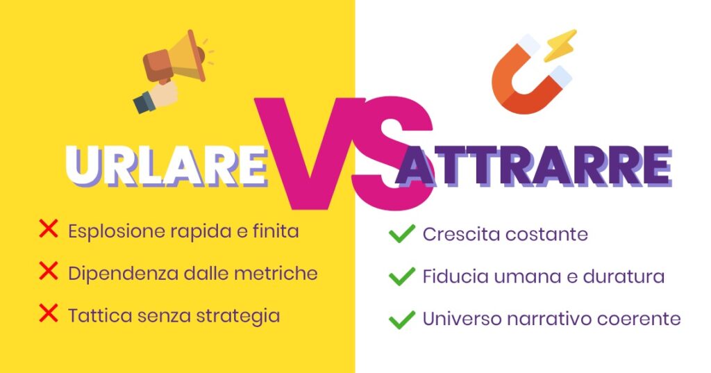 È quella che chiamiamo “La Strategia dell’Urlo”. Funziona? Sì, per un istante. Tutti si accorgono di te. Ma ben presto il rumore diventa brusio, e il brusio diventa silenzio.